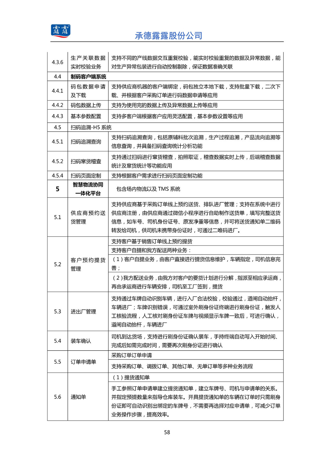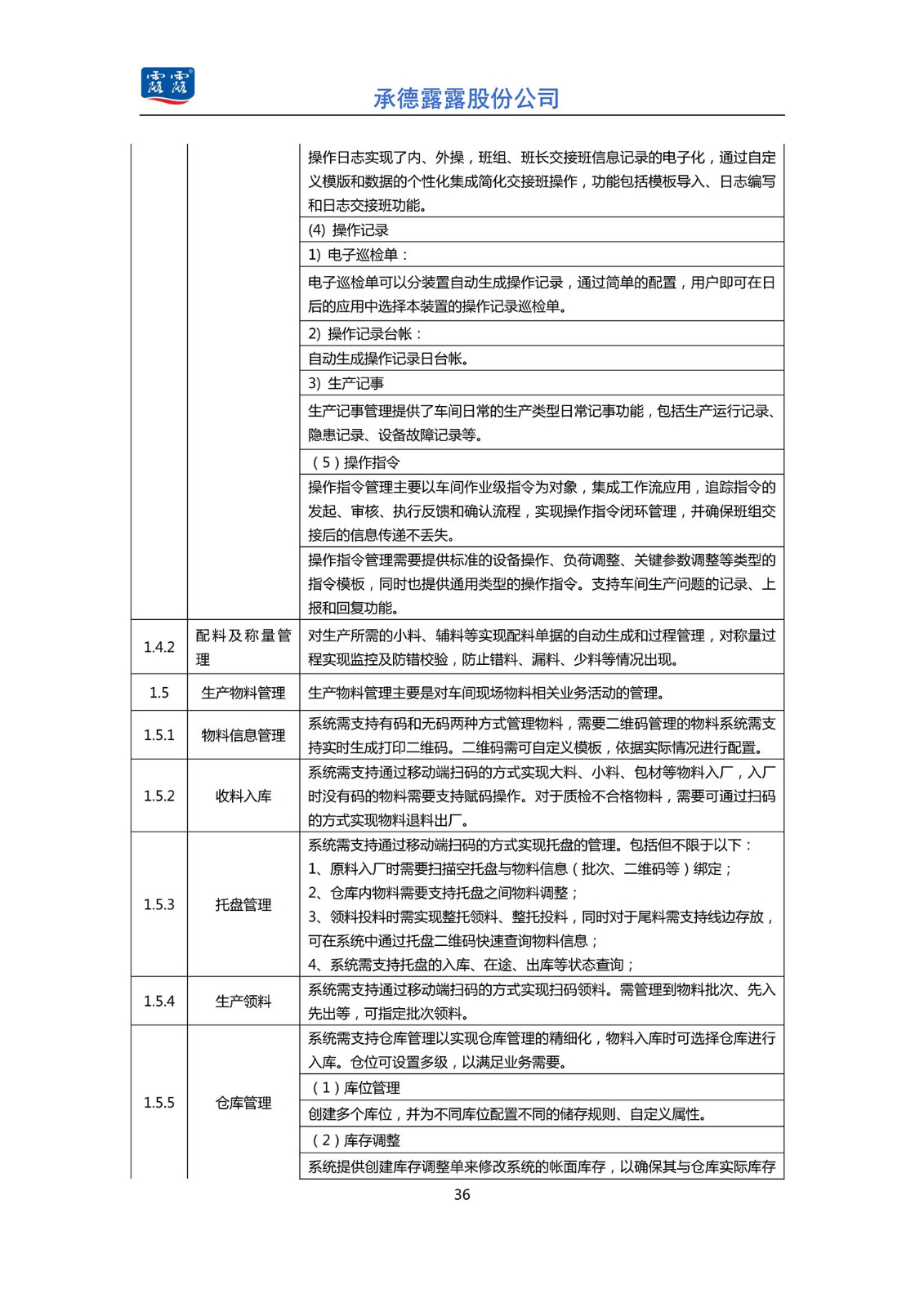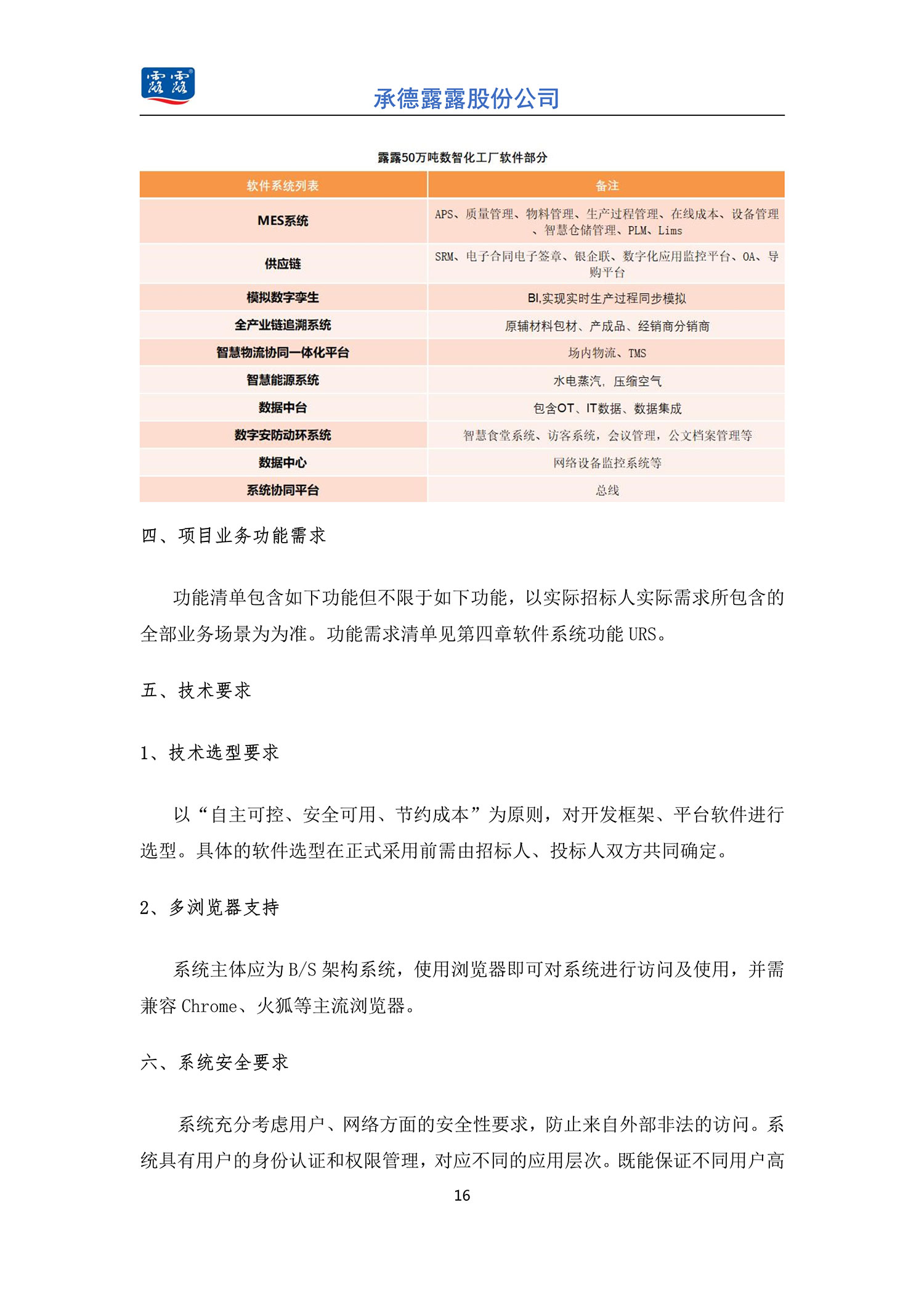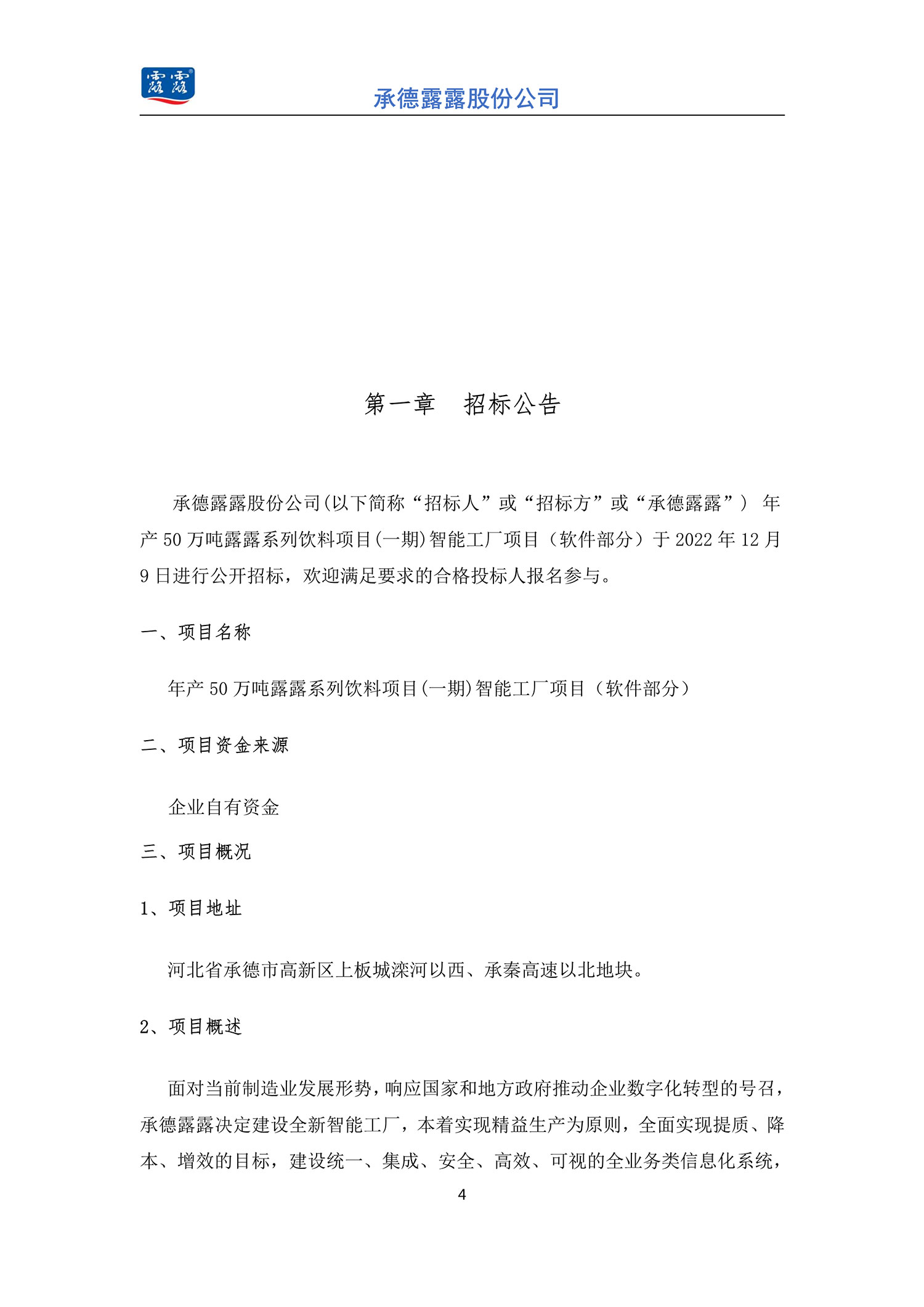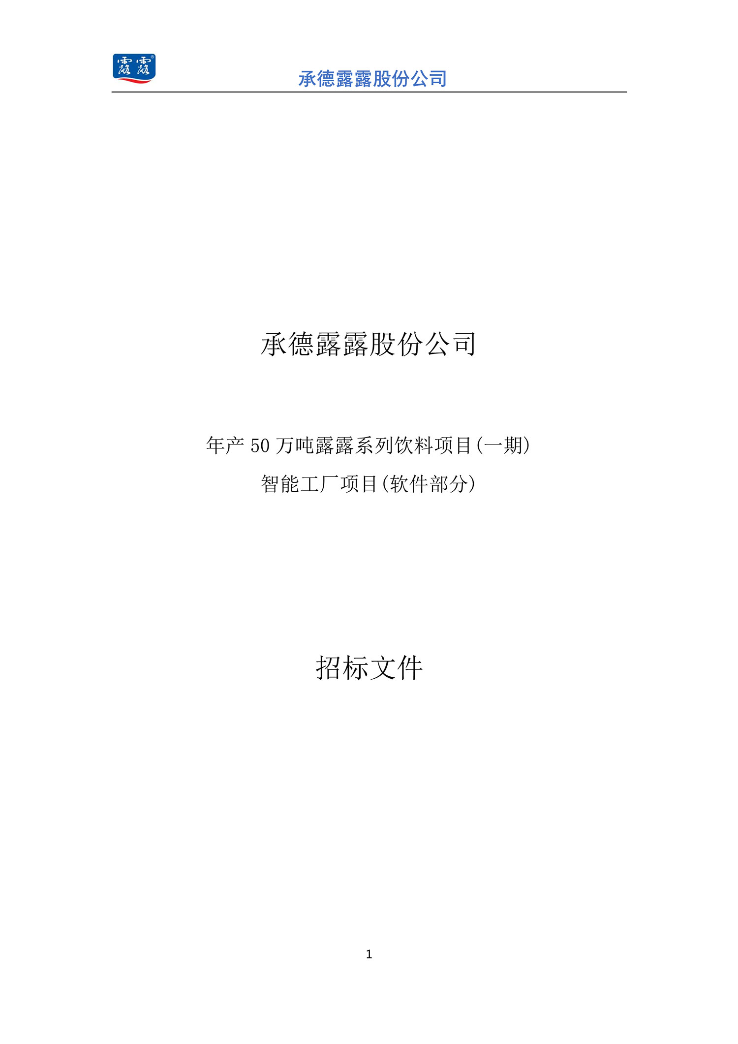 承德露露股份公司年產(chǎn)50萬(wàn)噸露露系列飲料項(xiàng)目(一期)智能工廠項(xiàng)目(軟件部分)招標(biāo)文件.docx
