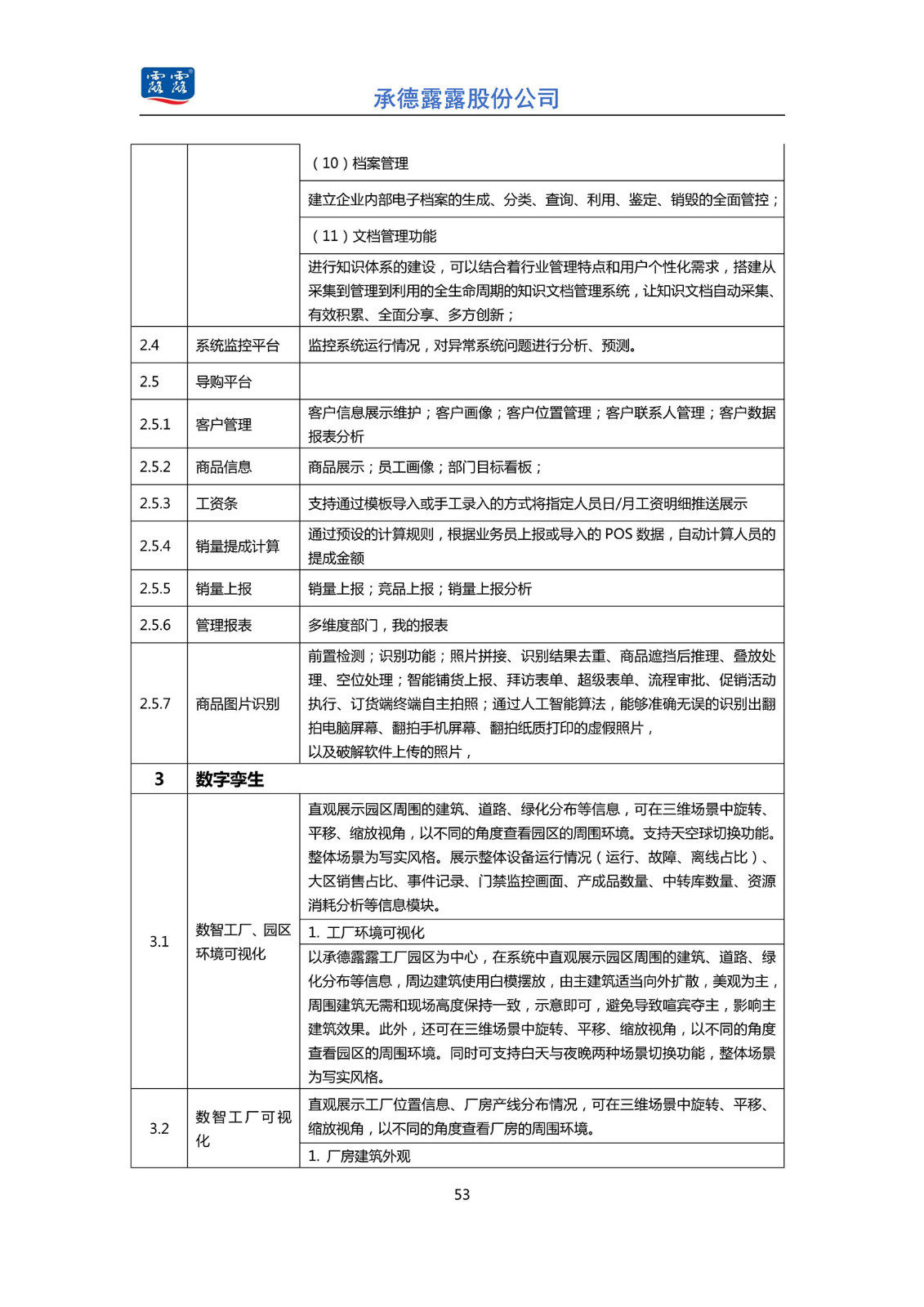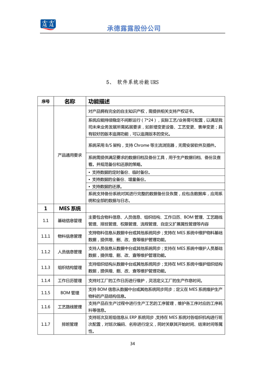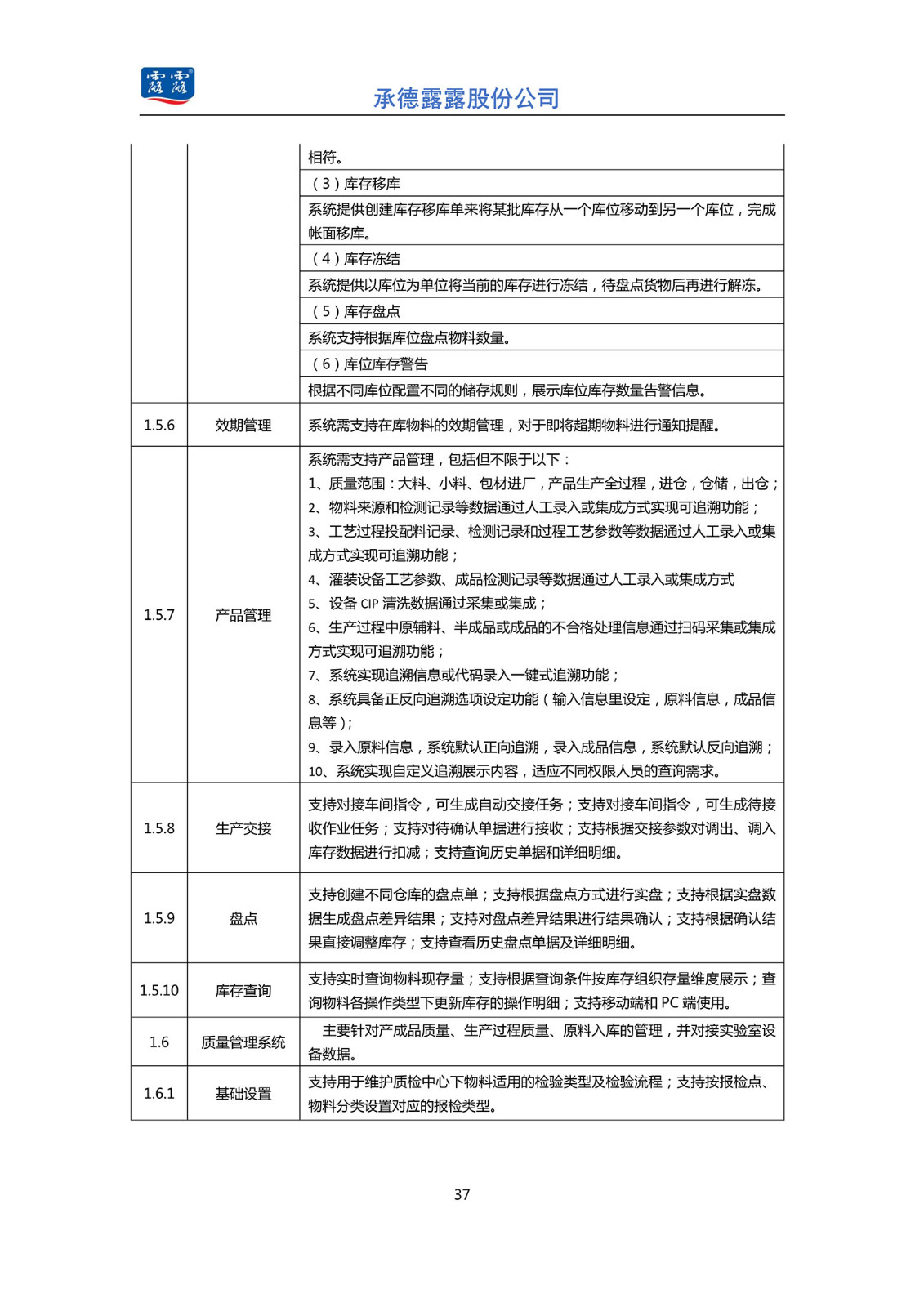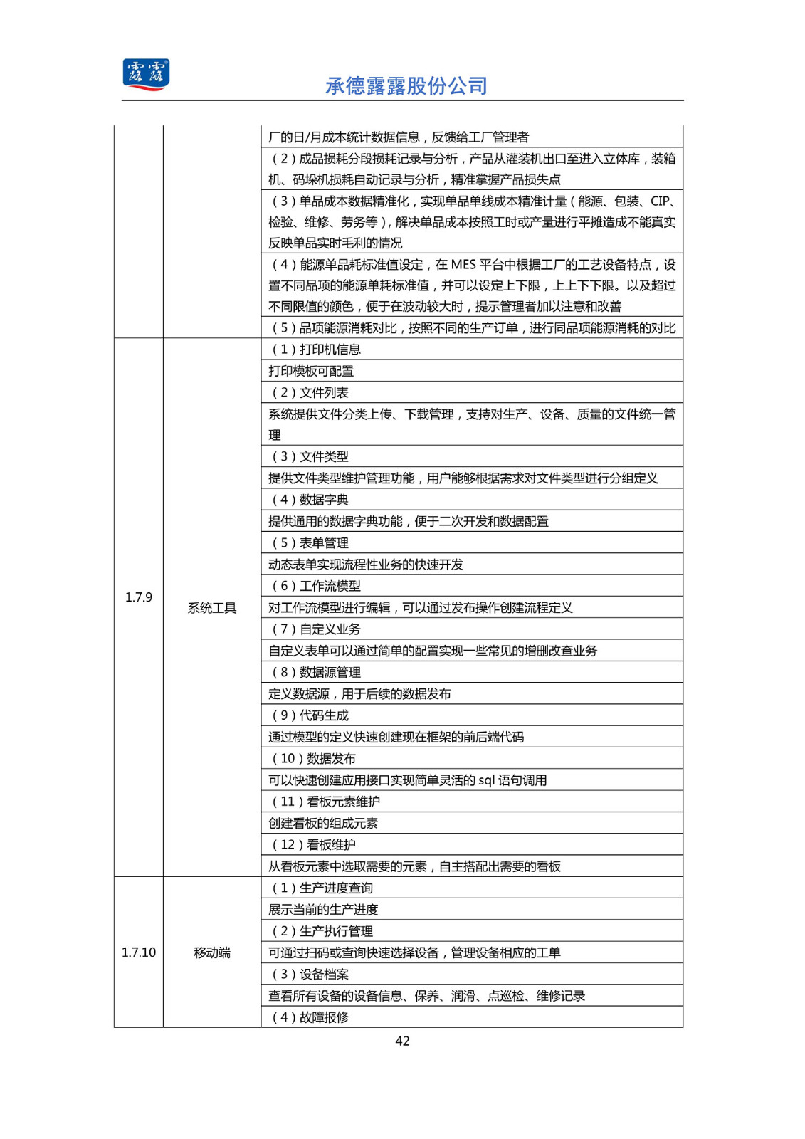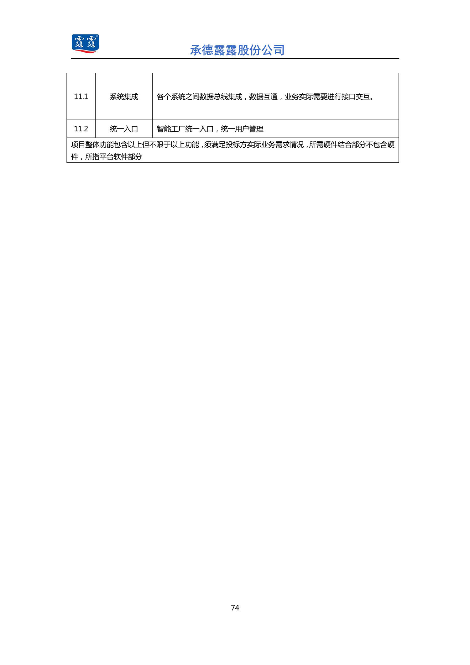承德露露股份公司年產(chǎn)50萬(wàn)噸露露系列飲料項(xiàng)目(一期)智能工廠項(xiàng)目(軟件部分)招標(biāo)文件.docx