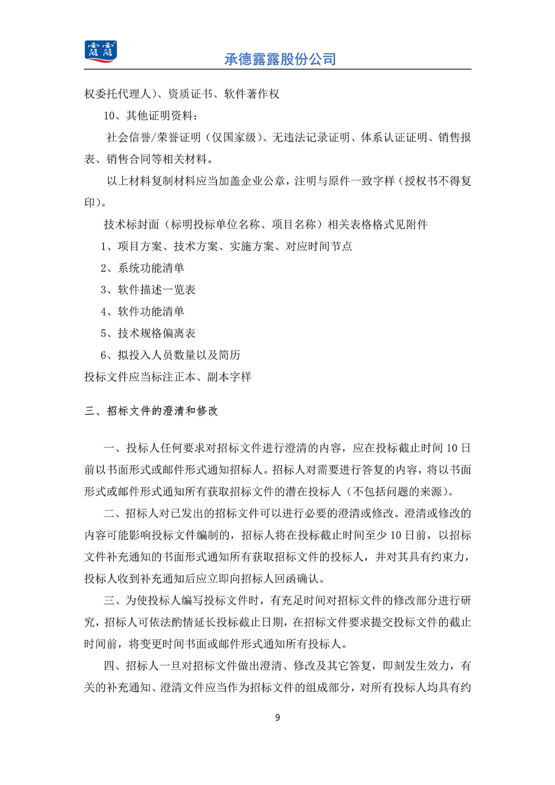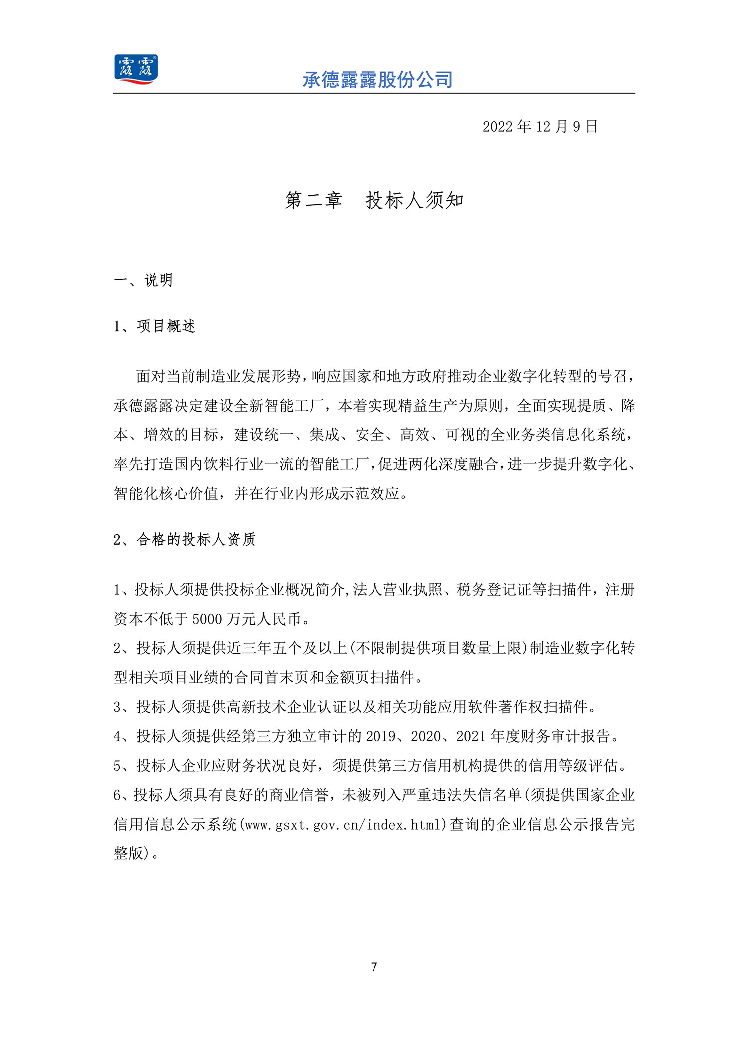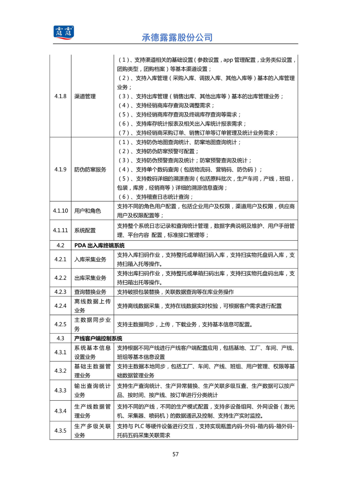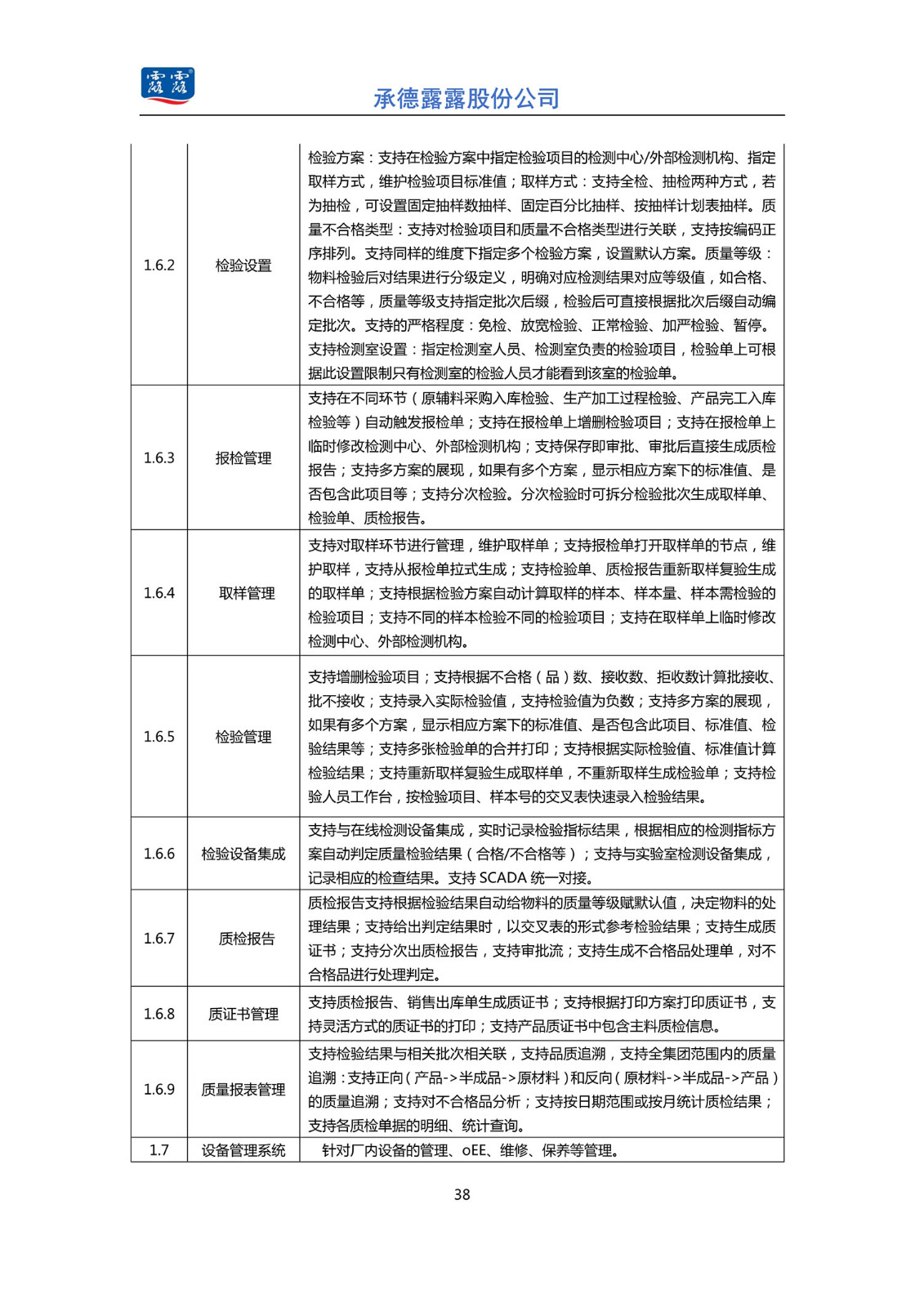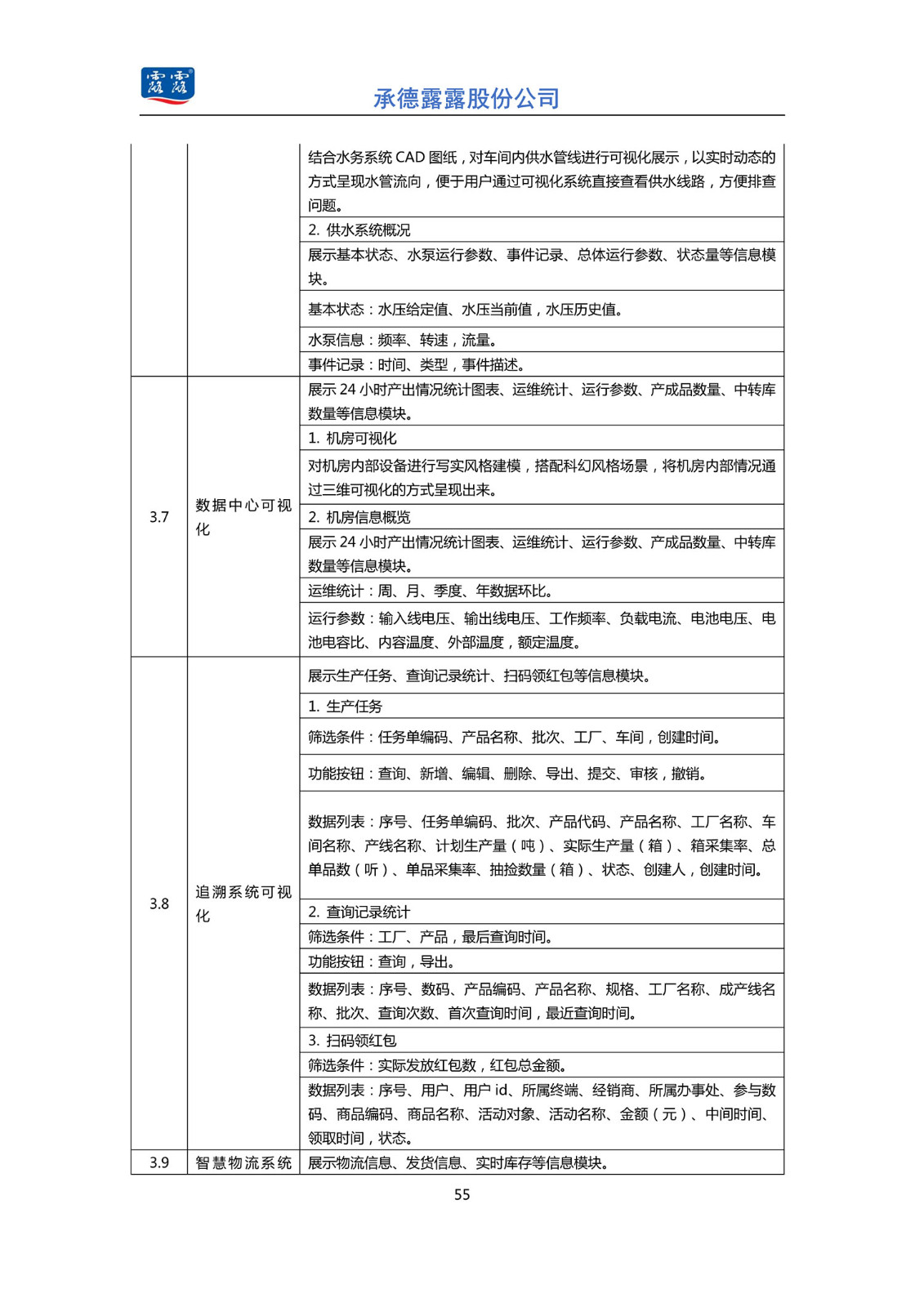 承德露露股份公司年產(chǎn)50萬(wàn)噸露露系列飲料項(xiàng)目(一期)智能工廠項(xiàng)目(軟件部分)招標(biāo)文件.docx