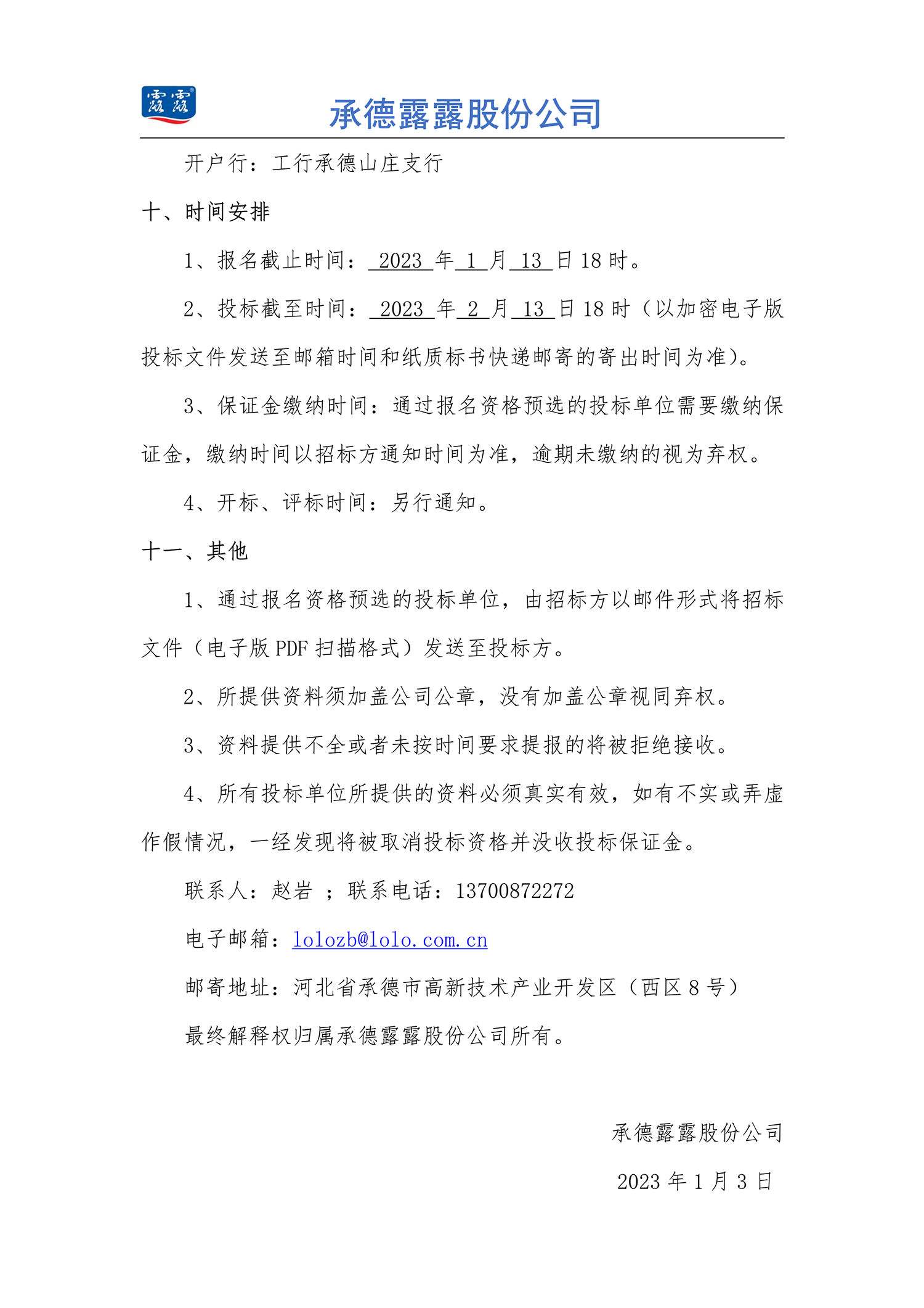 承德露露股份公司 年產 50 萬噸露露系列飲料項目(一期) 卸罐上蓋及后包整線設備招標公告