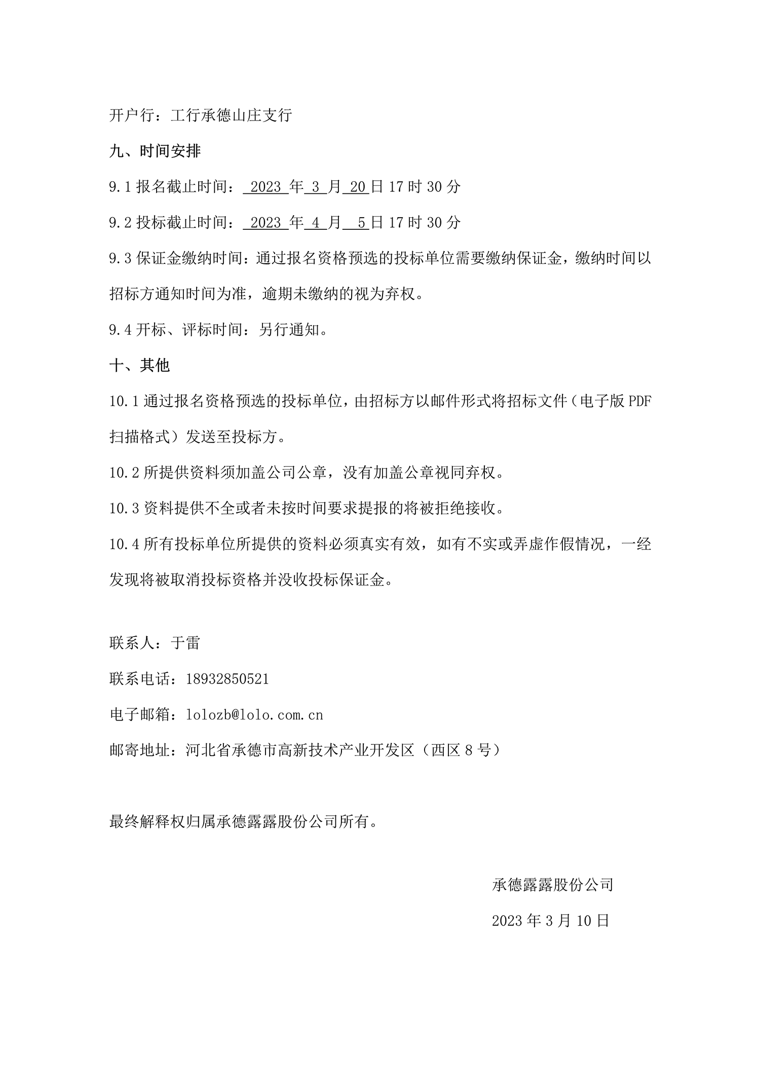 承德露露股份公司 年產 50 萬噸露露系列飲料項目(一期) 智能化研磨配料系統招標公告